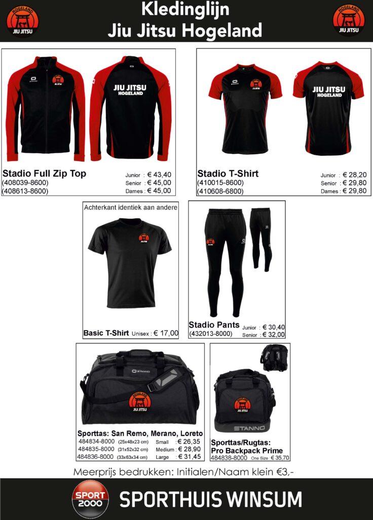 Hieronder het overzicht en de prijzen. Bestellen kan via de sensei in uw dojo!