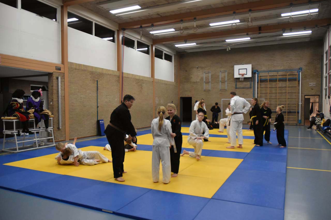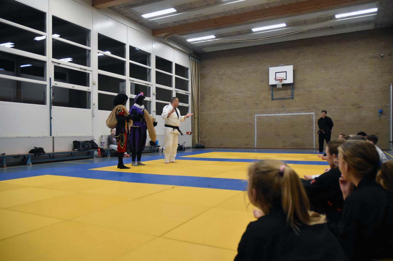 In totaal waren 19 jeugdleden aanwezig. Onder leiding van trainers Wanda en Berry werd er gewerkt aan techniek, motoriek en weerbaarheid. De aanwezigheid van de Pieten zorgde voor extra motivatie en enthousiasme binnen de groep. De jeugdleden kregen de gelegenheid om hun geleerde vaardigheden te demonstreren, wat door de Pieten met veel interesse werd gevolgd.